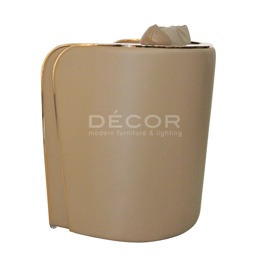 Upholster in P.U. leather + Rose Gold plated steel frame