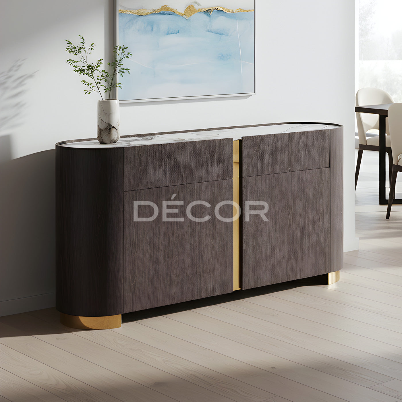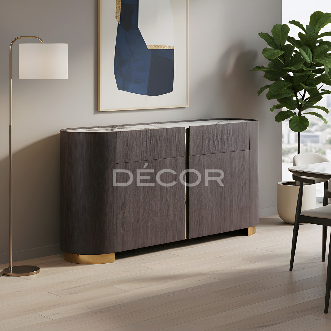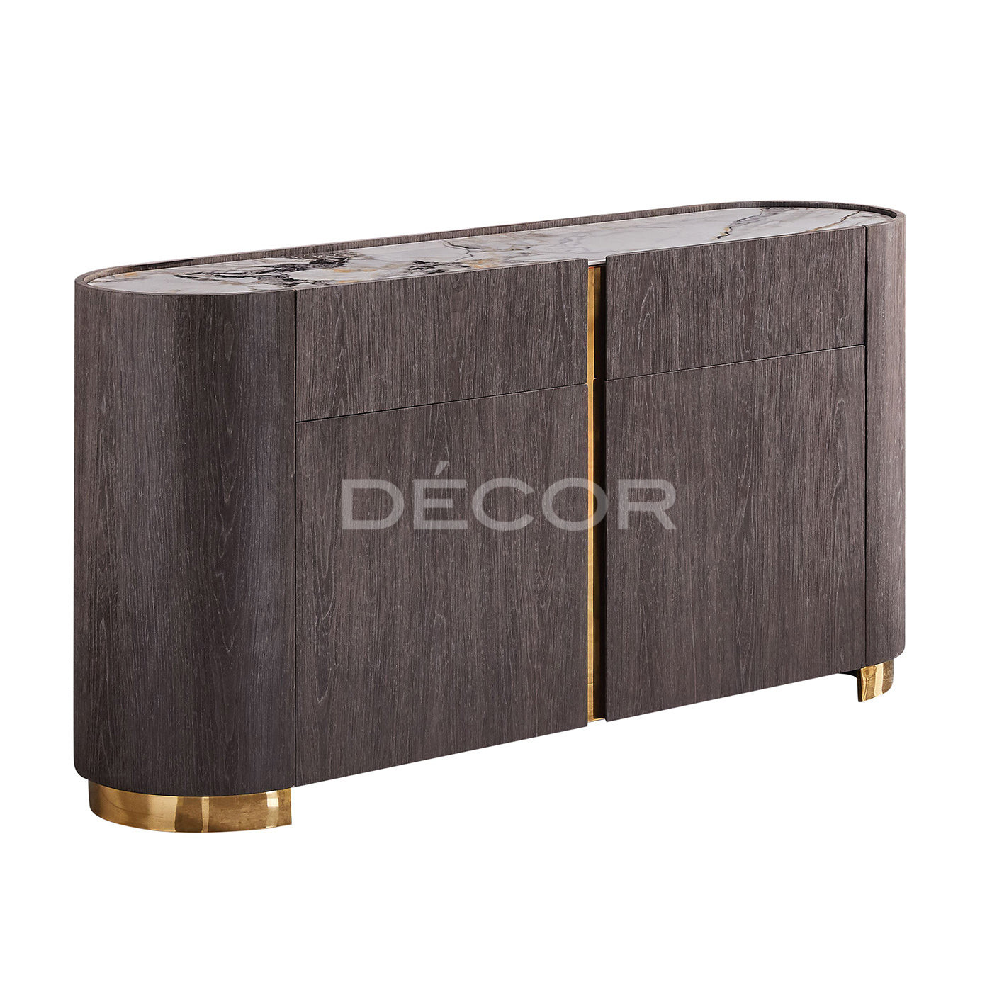• Material: Sintered stone on top with gold plated steel frame + MDF veneer.