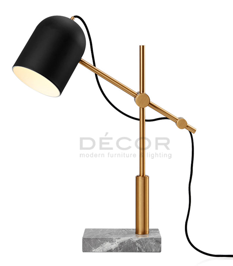 Brass gold plated steel + Marble base + Black coated steel lamp shade