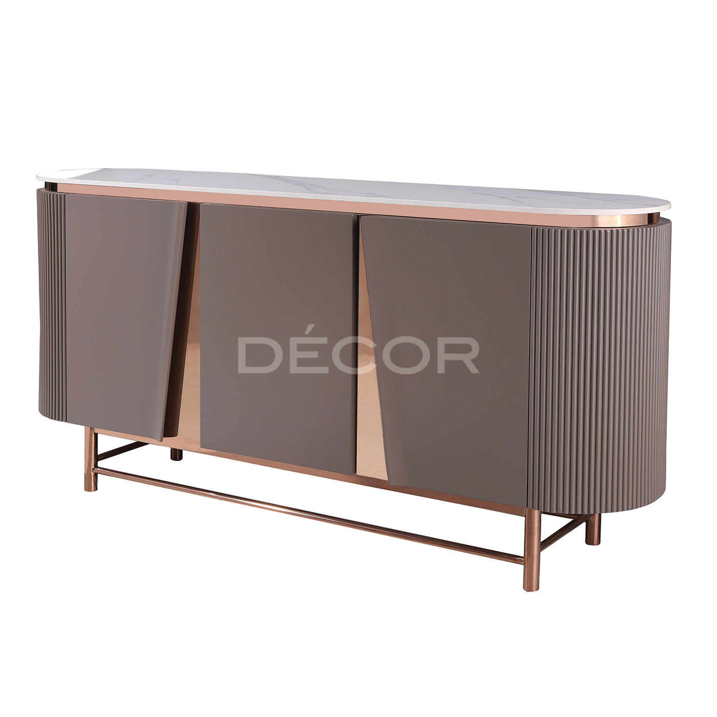 • Material: Sintered stone on top with rose gold plated steel frame + painted MDF.