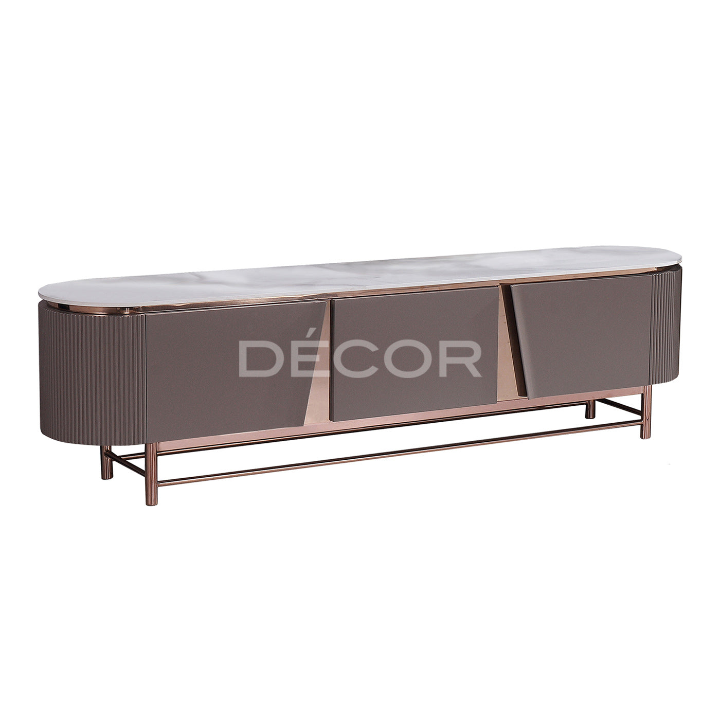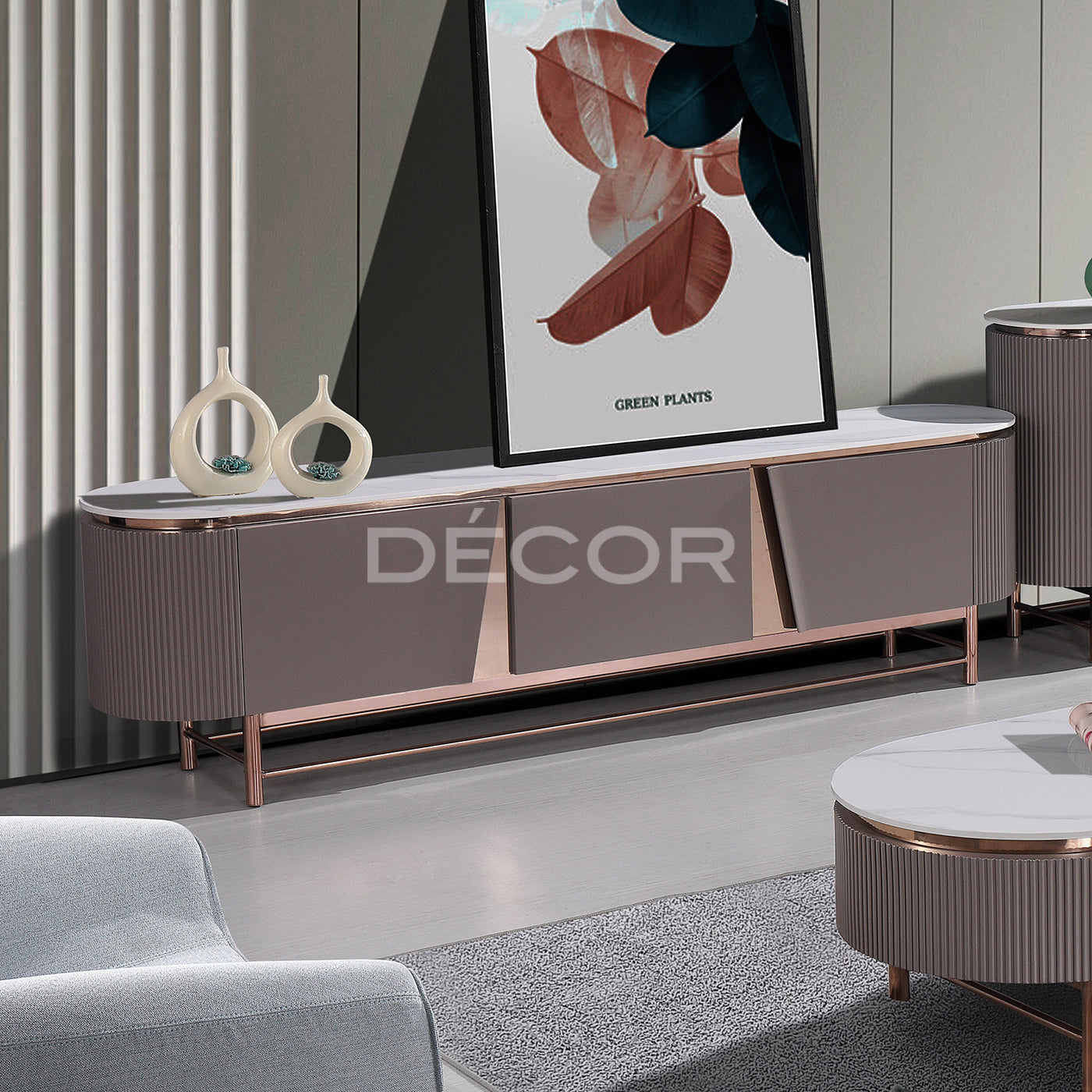 • Material: Sintered stone on top with rose gold plated steel frame + painted MDF.